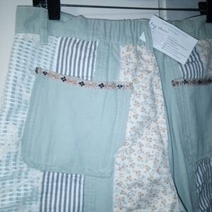 Stylish wide leg pants featuring a unique patchwork design. Perfect for a casual day out.
