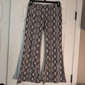Stylish snake print flare pull on pants. Comfortable, stylish, and versatile pants.
