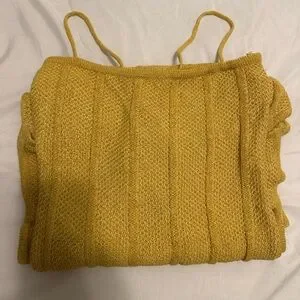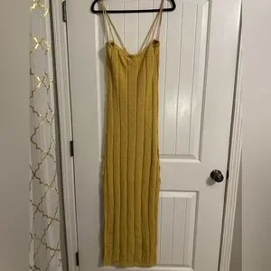 JLUXLABEL Yellow Cabana Views Crochet Dress, Size Medium, Crochet Material, Lace Up Back, Side Splits, worn once, no major flaws, lots of stretch. Perfect for vacation!