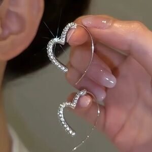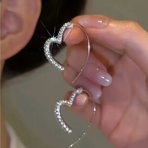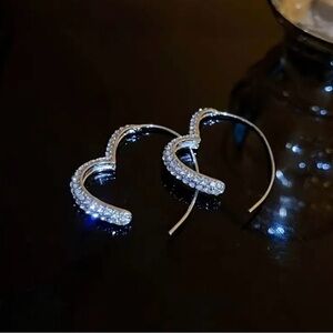 Elegant silver heart-shaped earrings adorned with sparkling crystals. Perfect for adding a touch of glamour.