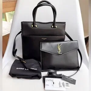 SOLD❤️Saint Laurent YSL Uptown Small Black Monogram Top Handle Bag + Clutch