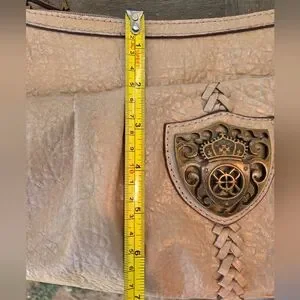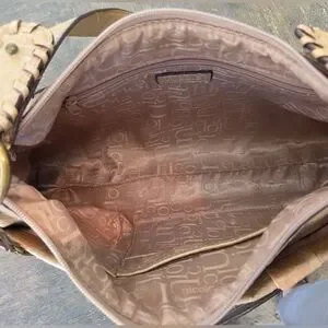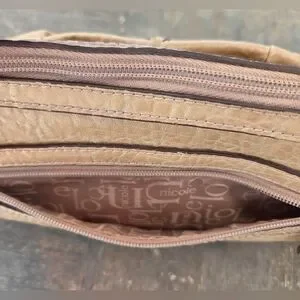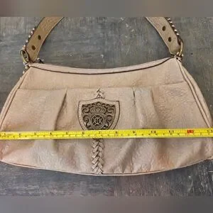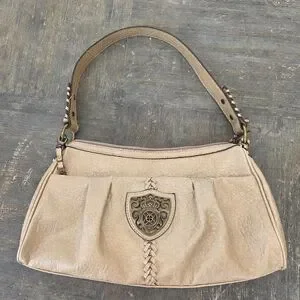 Nicole Miller Beige Y2K Shoulder Bag with Bag Charm and Emblem