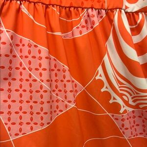 Vibrant orange and white casual knit (dry fit like material) dress. Features playful patterns. Adjustable shoulder ties. Perfect for everyday wear. My daughter just wore a couple of times. In excellent condition!