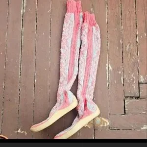 Free People Gypszy Pink Knit Sweater Over The Knee Boots