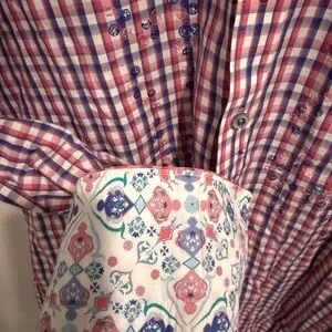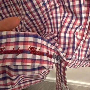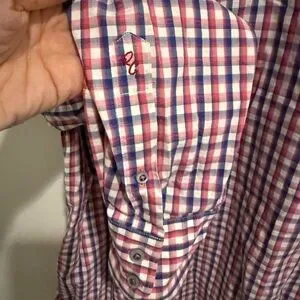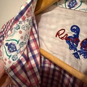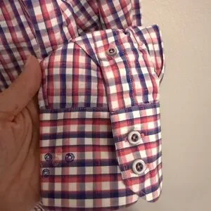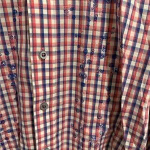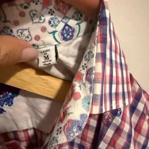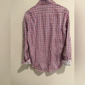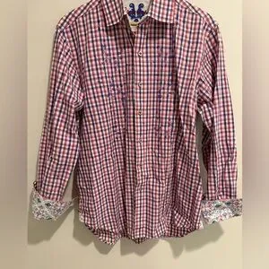 Robert Graham Dress Shirt Medium Classic Fit Red White Gingham Check Paisley