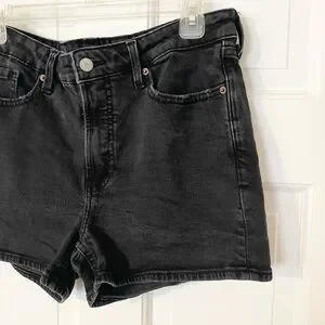 Black vintage wash shorts. High rise.