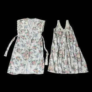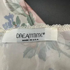 Vintage Nightgown Robe Set 1980s Dreamtime USA Floral Lace Trim Pastel Med? READ