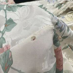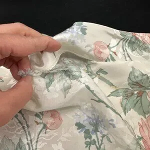 The belt is torn in a section along the middle. The gown has one small hole and three additional tears along one seam. The size tag has been removed I beleive this measures out to be about a size medium. However, please see the measurements and judge for yourself.