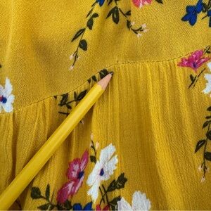 Old Navy Womens Dress Size Medium Tiered Yellow Floral Long Sleeves Boho READ