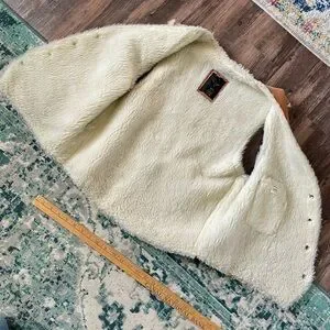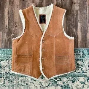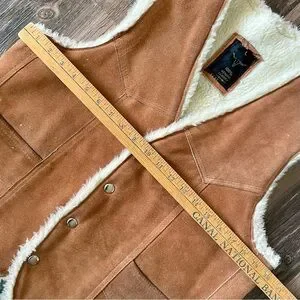 Vintage Caramel Brown Suede Leather Vest Cream Sherpa Lining Large Western