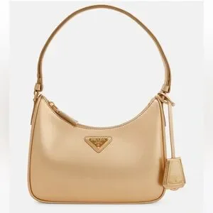This Prada shoulder bag in a stunning gold hue exudes elegance and sophistication. Crafted with a sleek and minimalist design, it features a structured yet flexible form that maintains its shape. The luxurious texture and gold-tone hardware make it a standout accessory for any occasion.