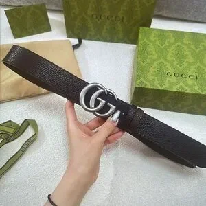 Stylish Gucci belt bag in black leather. Features a bold silver buckle with iconic logo. Perfect for modern fashion.