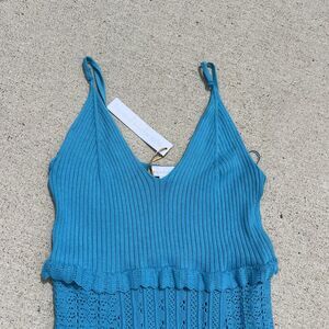 House of Harlow 1960 Blue Crochet Knit Maxi Dress Spaghetti Straps NWT LARGE