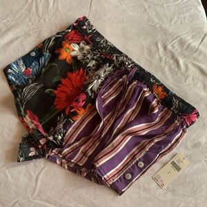 Anthropologie NWT Satin Pajama Shorts Multi Floral/Stripe Side Button Detail Sm