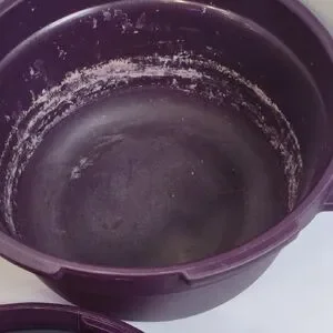 Original Tupperware Microwavable Pressure Cooker. Note staining on inside, does not affect integrity of device.