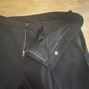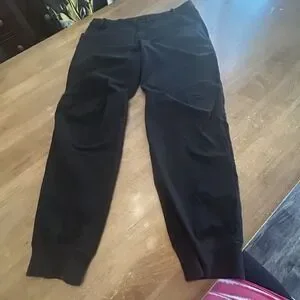Experience ultimate comfort with these black golf, office, night out pants from lululemon athletica, featuring a relaxed fit and elastic cuffs for a modern jogger style. Perfect for casual outings, these pants offer a blend of style and functionality with their soft, breathable fabric and elastic waistband and belt loops