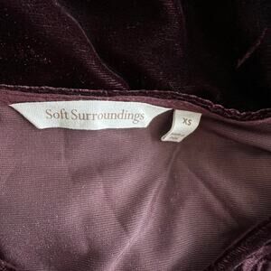 Soft Surroundings Crush Velvet Tunic Top Women's XS Burgundy Embroidered Floral