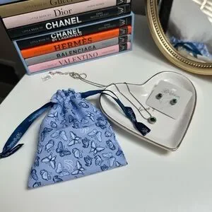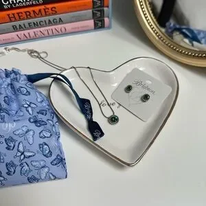 Chic Brighton set with emerald green earrings and necklace. Adds elegance to any look.