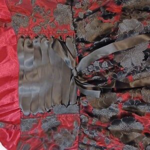 DOLLSKILL SUGAR THRILLS 1X BURGUNDY/ BLACK FLOWER APPLIQUES OVERLAY FULLY LINED