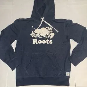 Roots Canada Hoodie Sweatshirt Mens Medium Blue Hooded Pullover Beaver