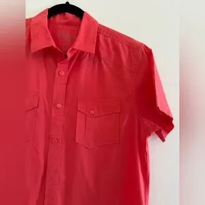 Guess Men's Vibrant Red Casual Button Down Shirt
