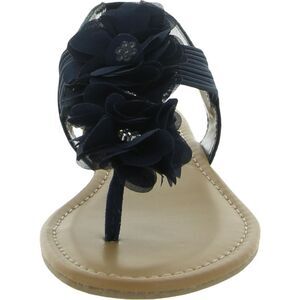 WILD PAIR Womens Navy Stretch Sari Round Toe Wedge Slip On Thong Sandals 6.5 M
