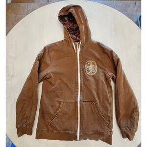 Nike Poler Outdoor Brand Full Zip Jacket. Reversible. One side Brown Camo, One side brown. White zipper. Puffer. Hoodie. There is no size tag, please refer to measurements for size. In good preowned condition. Smoke free home.