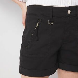 These sleek black cargo shorts from White House Black Market offer a modern twist on a classic style. Crafted with a fitted silhouette, they provide a comfortable and polished look for any casual occasion. The deep black color ensures a versatile addition to your wardrobe.