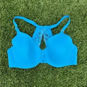 Chic lace bra in bright blue. Adds a pop of color.