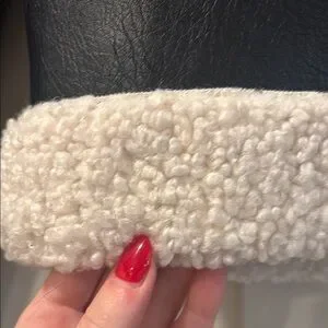 Abercrombie & Fitch Black and Cream Leather Jacket with Shearling Trim