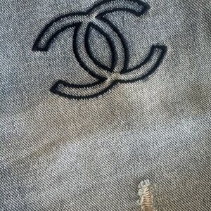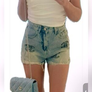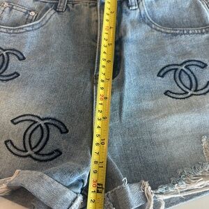 Blue Chanel Denim Jean Shorts with Distressed Hem and Logo Design