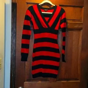Black and red striped bodycon sweater dress by Guess, size small.