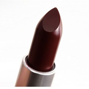 MAC Lingering Kiss Lipstick is a deep plum red with a Matte finish. It's a deepened, reddish burgundy with warm undertones and a soft shine. Color lasts 6 to 8 hours.