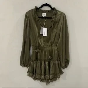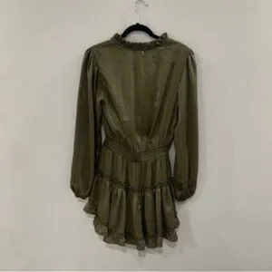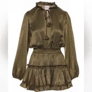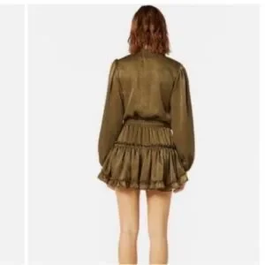 NWT Misa Los Angeles Dress Lorena Mini Tiered in Olive Green Satin