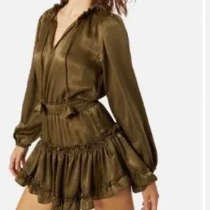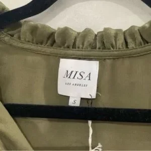 ✅ NWT Misa Los Angeles Dress Lorena Mini Tiered in Olive Green Satin