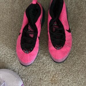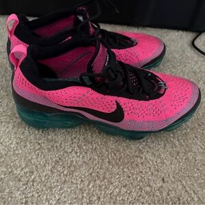 Dynamic Nike Vapormax shoes in bold pink and black. Ideal for active wear.