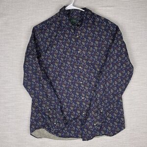 J Crew Oarsman Shirt M Mens L/S Button Up Multicolor Paisley Print on Navy VGUC