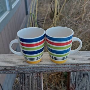 Pfaltzgraff Morocco Mugs – Set of 2 Bold Primary Striped Stoneware |Discontinued
