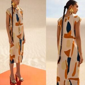 Diarrablu Fany Dress 2XL Plus Size Midi Geometric Print Peasant Tie Artsy Shift