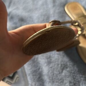 Tory Burch sandals with metallic gold accents. Definitely worn. Slight peeling on the sandal straps. Make me an offer! No box or drawstring bag. :( more pictures upon request. 💛
