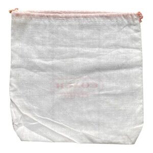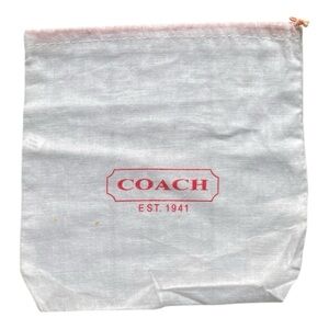 White dust bag with bold red Coach logo. Ideal for accessory storage. Shows some small stains, please see photos for details. 7.75” x 7.75”.
