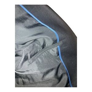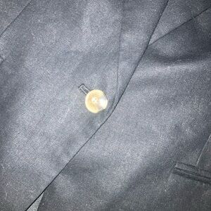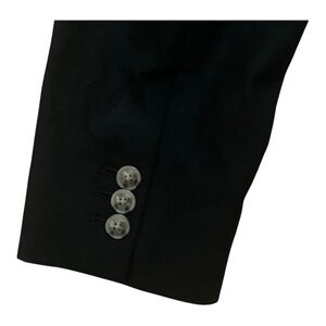 J. Crew Petite linen-blend one-button blazer, black with brown marble buttons, notched collar, inside card pocket along with two outside welted pockets, 3 button functional cuffs, black lining with blue piping, 55% linen/45% cotton, size 12P, NWT.