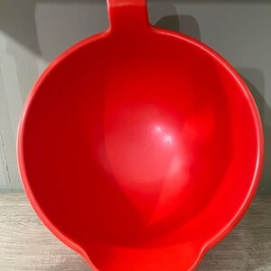 Beautiful Vintage Dansk Gourmet Design 3.5 Quart Red Batter Bowl with Handle and Spout Kitchen Bowl made in Denmark Retro 60s Mod Decor