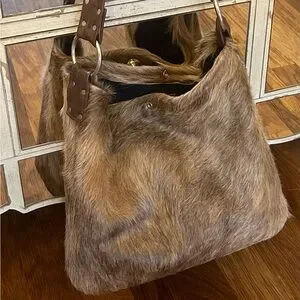 Stylish and unique, this brown cowhide shoulder bag is perfect for adding a touch of luxury to your outfit. The soft texture and rich color make it a standout accessory for any occasion.