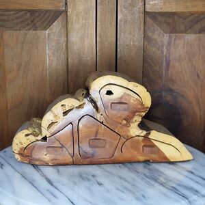 Enhance your space with this beautifully crafted natural wood jewelry holder. Its unique design and warm brown tones add a touch of nature to any room. 1 of a kind, handmade. $75.