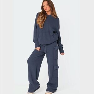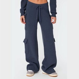 Baggy from the end of the pants better if your tall very stretchy from will probably fit large and small jaw string snatch your waist. Experience comfort and style with these blue cargo knit pants. Perfect for casual outings or lounging at home. I’m size medium but should of gotten small I’m 5’3 or if u have high tops or new balances this pants will fit perfect
