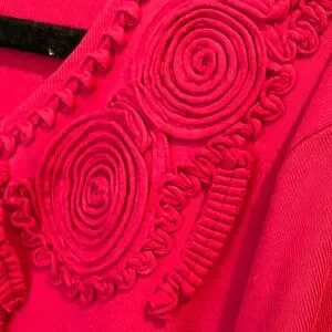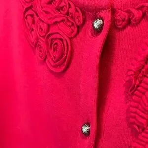 Rafaella Red dressy Button Down light cardigan sweater 2x flower detail,