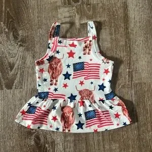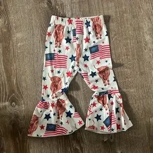 ADORABLE 100% cotton set with highland cows, stars, and flags