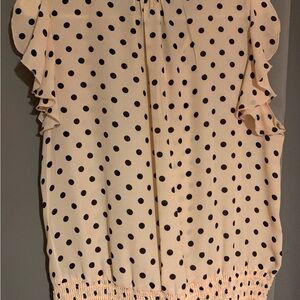 Chic and stylish polka dot top with ruffle sleeves. Perfect for any occasion.