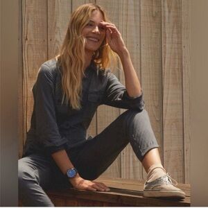 Outerknown SEA suit storm gray long sleeve utility jumpsuit linen blend SMALL